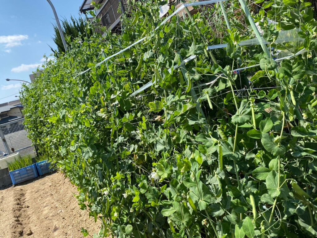 「ぽつぽつ出来始めたかなぁ~」と数日様子を見ていたら、あっという間に大量の「絹さや」が実っておりました!笑